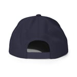 This hat is structured with a classic fit, flat brim, and full buckram. The adjustable snap closure makes it a comfortable, one-size-fits-most hat.